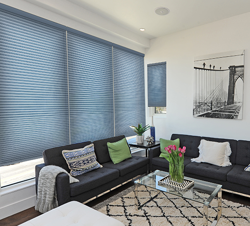 Our honeycomb shades are available in a variety of colors, textures, and opacities to complement any décor.